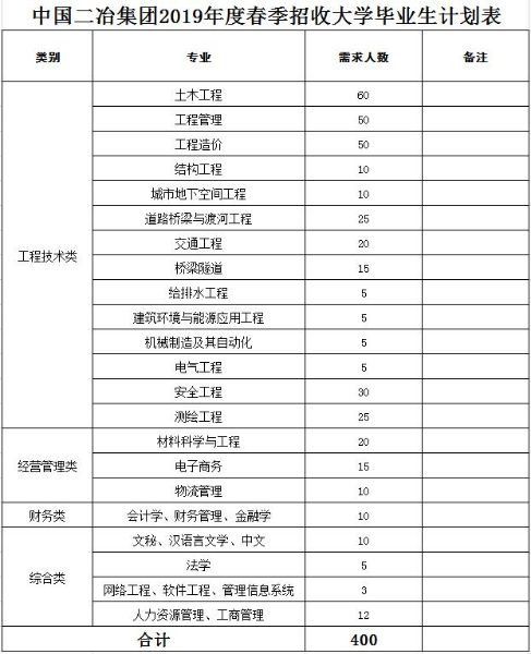 中國(guó)二冶集團(tuán)有限公司2019年度春季招收應(yīng)屆高校畢業(yè)生招聘簡(jiǎn)章