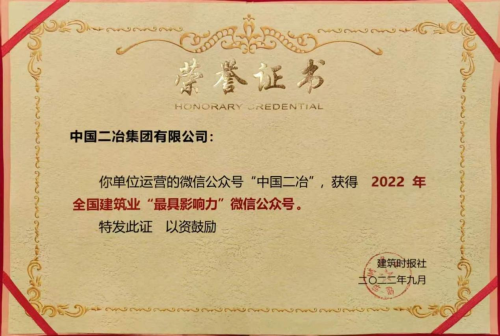 9月24日,由建筑時(shí)報(bào)社主辦,中國建筑業(yè)協(xié)會(huì)指導(dǎo)的2022年建筑業(yè)微信公眾號(hào)運(yùn)維經(jīng)驗(yàn)交流研討會(huì)暨全國建筑業(yè)優(yōu)秀微信公眾號(hào)頒獎(jiǎng)典禮在湖北武漢舉行。中國二冶微信公眾號(hào)“中國二冶”被授予2022年“全國建筑業(yè)最具影響力微信公眾號(hào)”榮譽(yù)稱號(hào)。